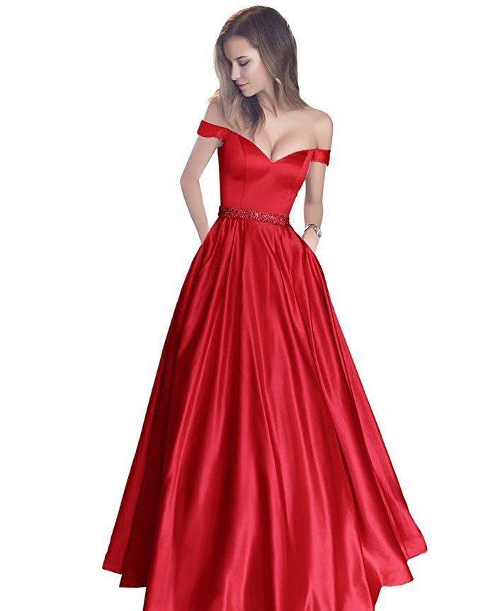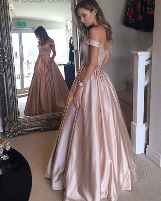 Nuevos vestidos de fiesta amarillos largos 2019 de satén de línea A para niñas, vestidos de fiesta formales de graduación con cinturón de cuentas