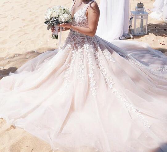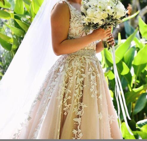 Vestido de novia de encaje color piel/marfil con cola corta para mujer, vestido de novia para boda, Robe De Mariee WD10115