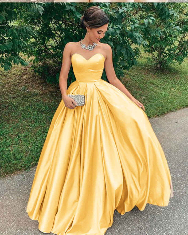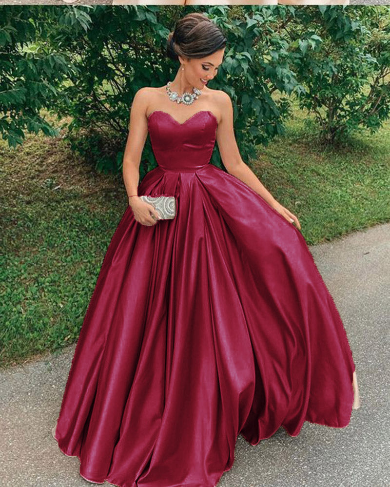 Vestido de fiesta largo con escote en forma de corazón y satén brillante PL2227