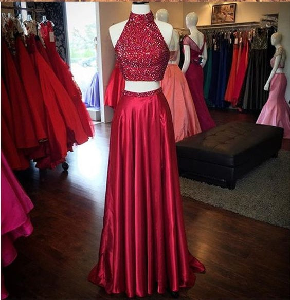 Siaoryne LP0903 Vestido de fiesta de dos piezas con cuello alto y escote en burdeos, top corto, vestidos formales de noche