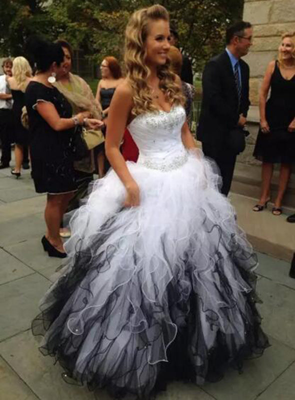 Siaoryne LP0928 Vestido de quinceañera con escote en forma de corazón en blanco y negro, vestido de fiesta formal para niñas