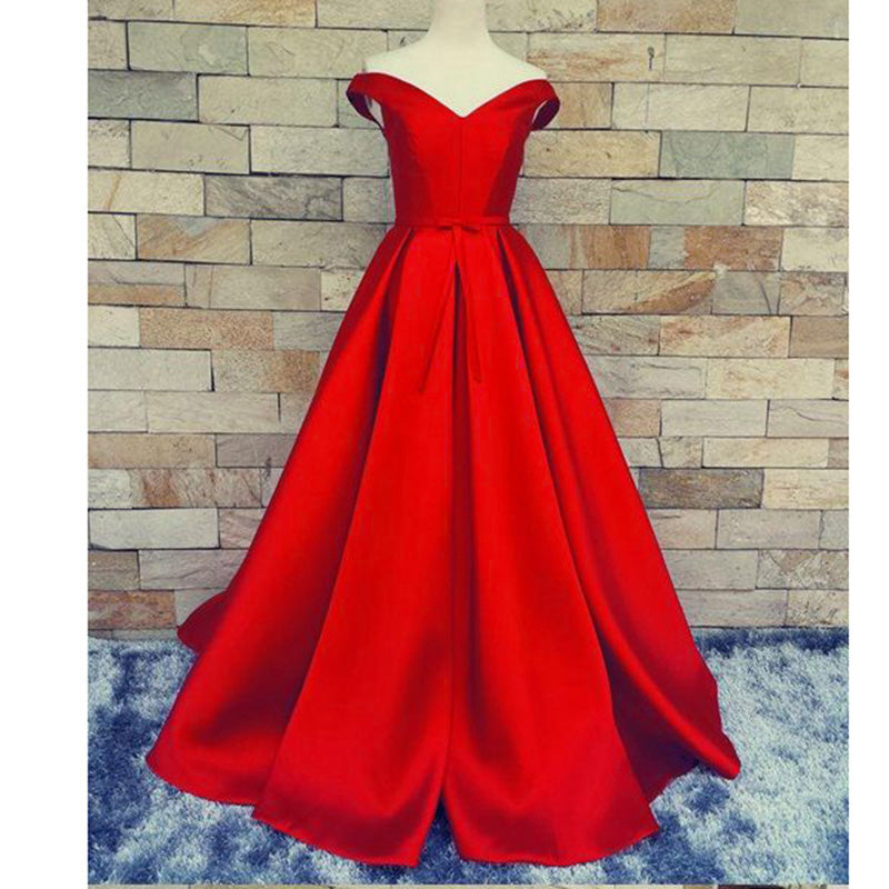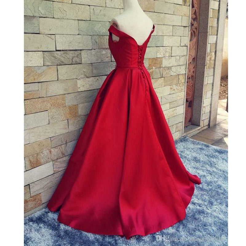 Siaoryne LP1004 Vestido de fiesta de satén burdeos con hombros descubiertos, largo, elegante, de corte A, para mujer, vestido de fiesta formal