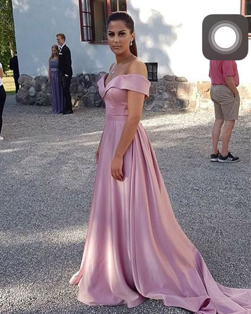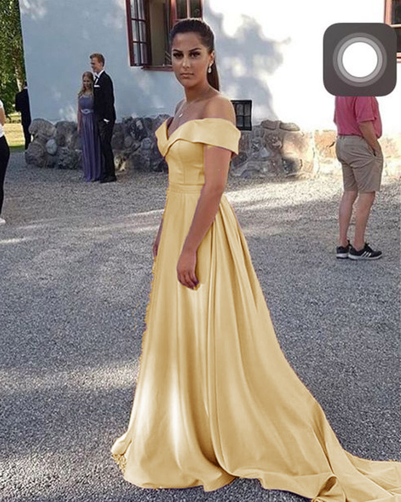 Siaoryne Off Shoulder Azul Claro A Line Satén Niñas Vestidos Formales De Fiesta Largo Vestido De Festa Longo 2020