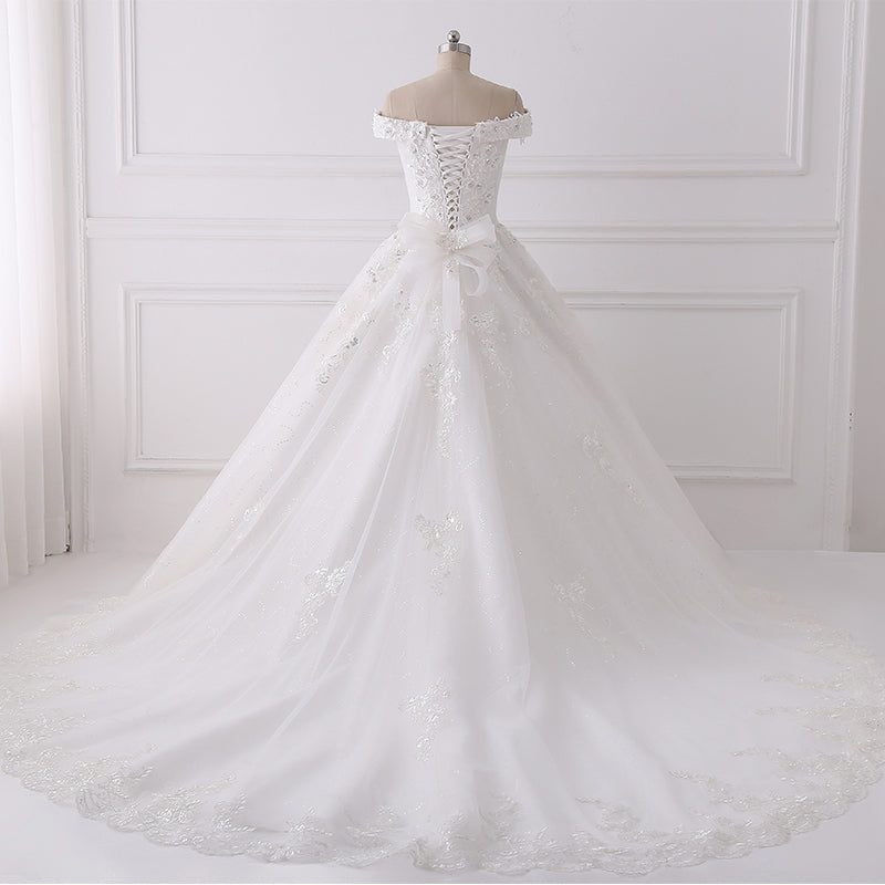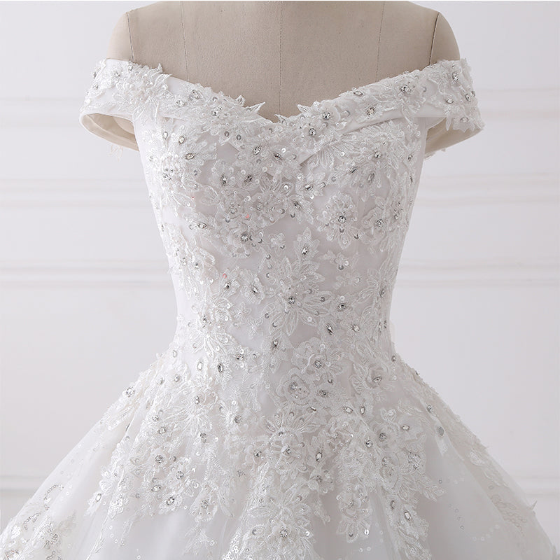 Siaoryne Vestidos de novia de encaje con hombros descubiertos para mujer para boda con abalorios WD229