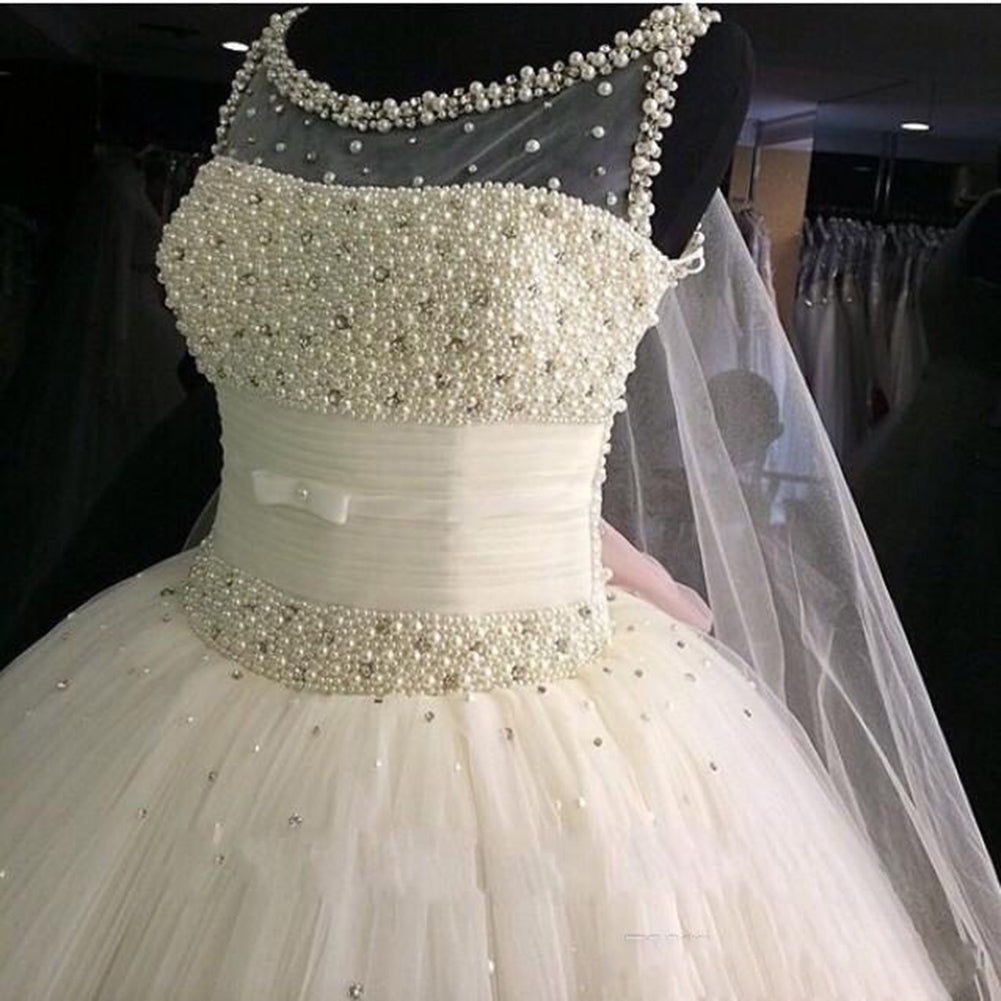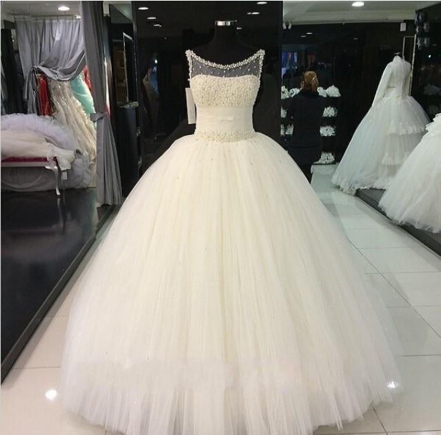Siaoryne - Vestido de novia con escote redondo y perlas, estilo princesa, hecho a medida, para novias 2018