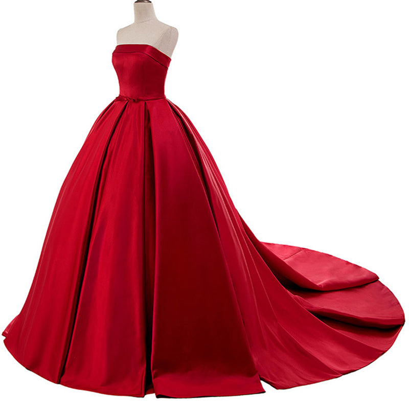 Vestido de fiesta rojo oscuro burdeos sin tirantes, vestido de fiesta para mujer 2018, vestido de novia WD3323