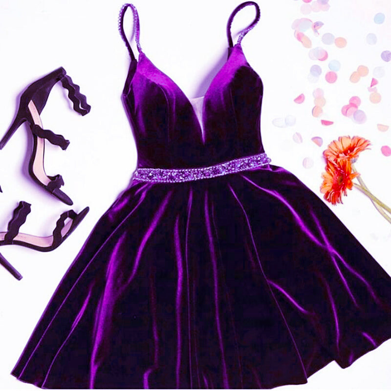 Vestido corto de cóctel de terciopelo Siaoryne con tirantes finos y cinturón con cuentas SP154