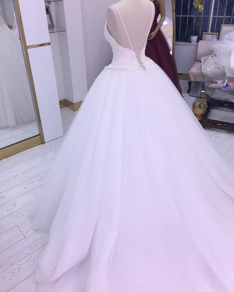 Siaoryne WD002 Vestido de novia de tul con cuentas de lujo Vestido de novia sin espalda con tirantes finos
