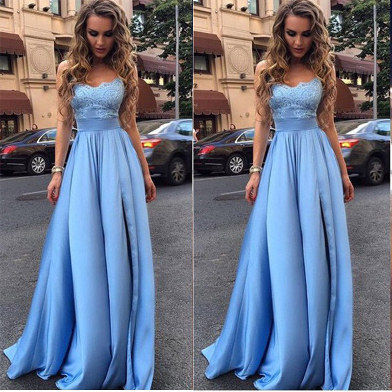 Vestidos de fiesta largos de escote corazón en azul cielo, vestidos formales de satén para niñas 2021
