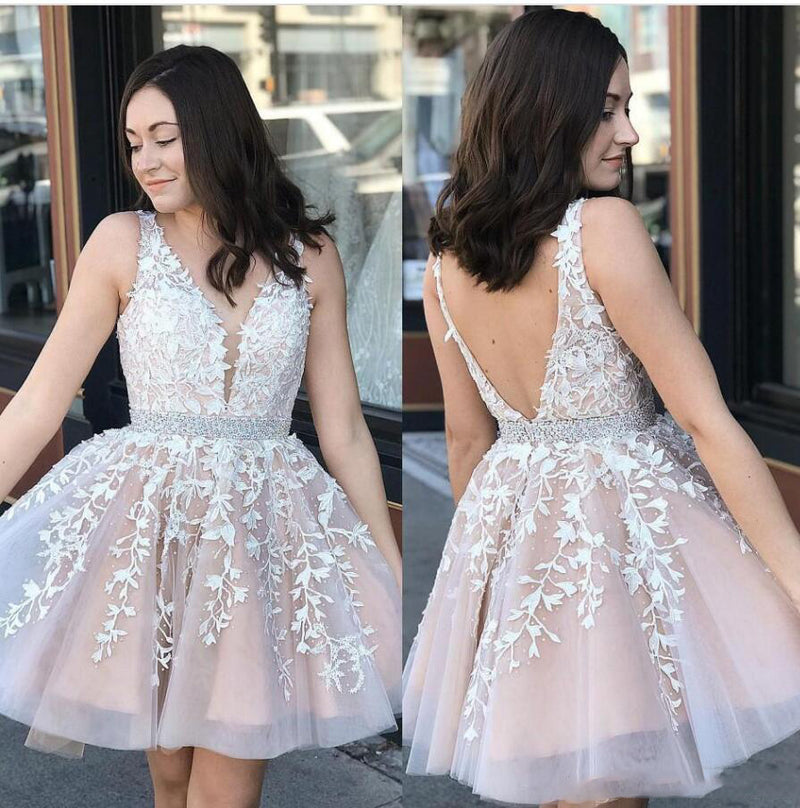 SP0520 Hermoso vestido de fiesta de bienvenida con dos tul color piel/marfil y encaje para adolescentes, vestido de fiesta corto para 8.º grado