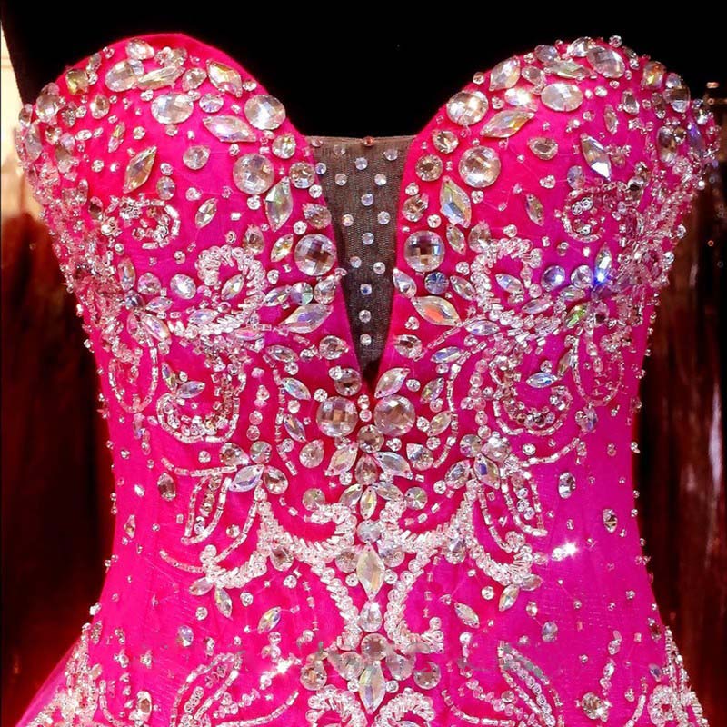 Vestido de fiesta de fiesta rosa fucsia con cuentas brillantes, vestido de debutante, quinceañera, dulce 16