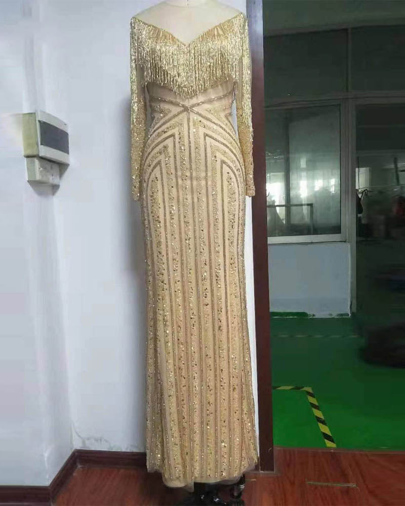 Vestido de noche de lujo brillante con cuentas pesadas Vestido de fiesta formal PL687