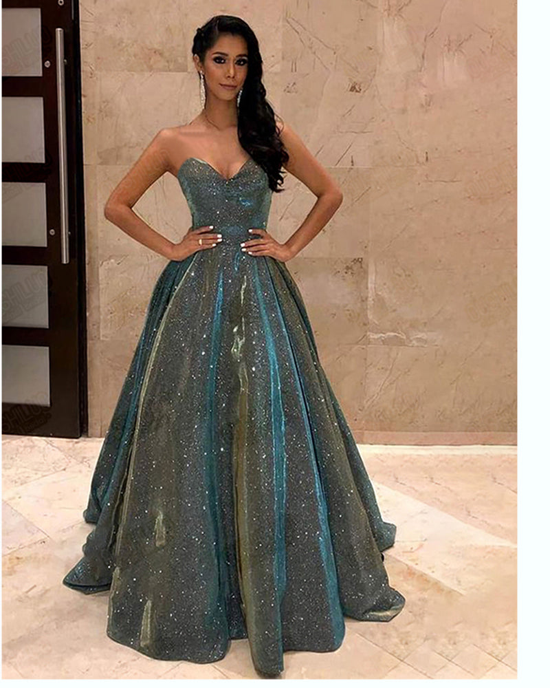 Vestidos de fiesta de línea A con lentejuelas brillantes y escote en V, vestido de fiesta de pavo real sin tirantes, vestido de fiesta brillante con espalda abierta para mujer PL10422