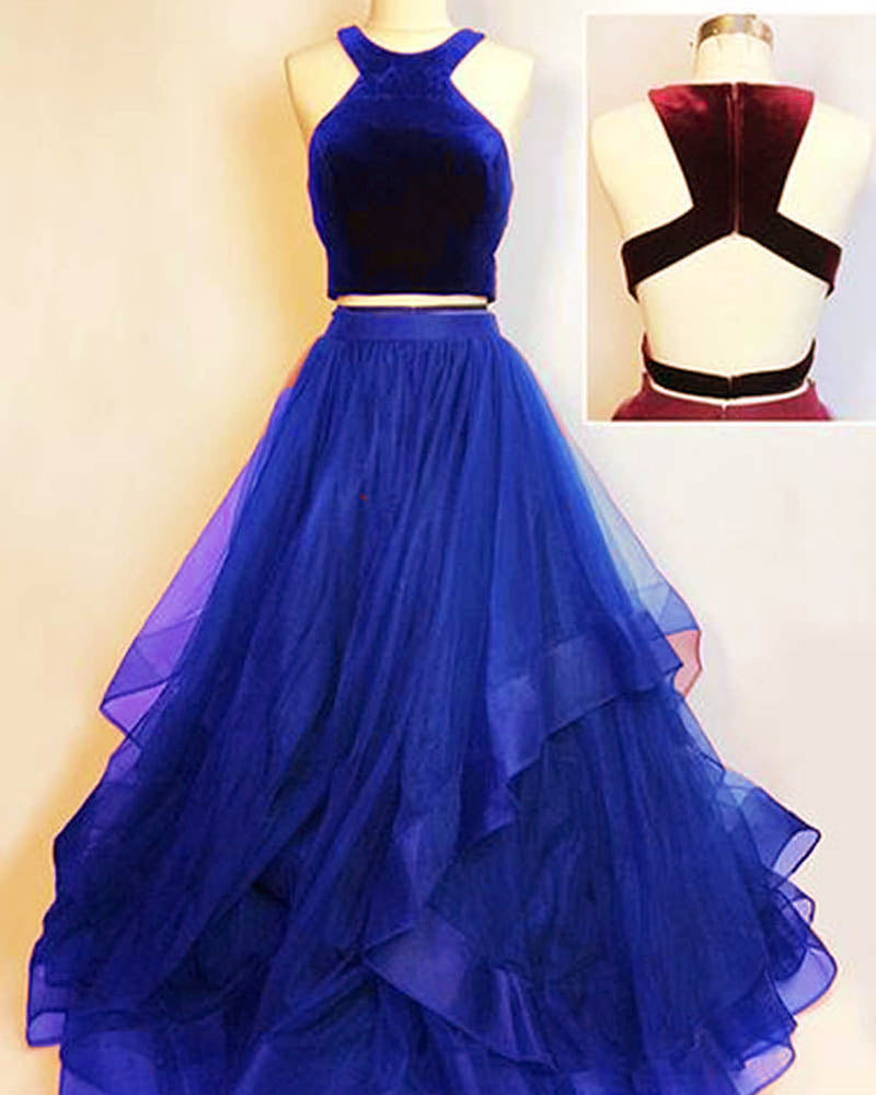 Borgoña rebordear Halter Corp Top/dos/2 piezas corto Jr. vestidos de graduación