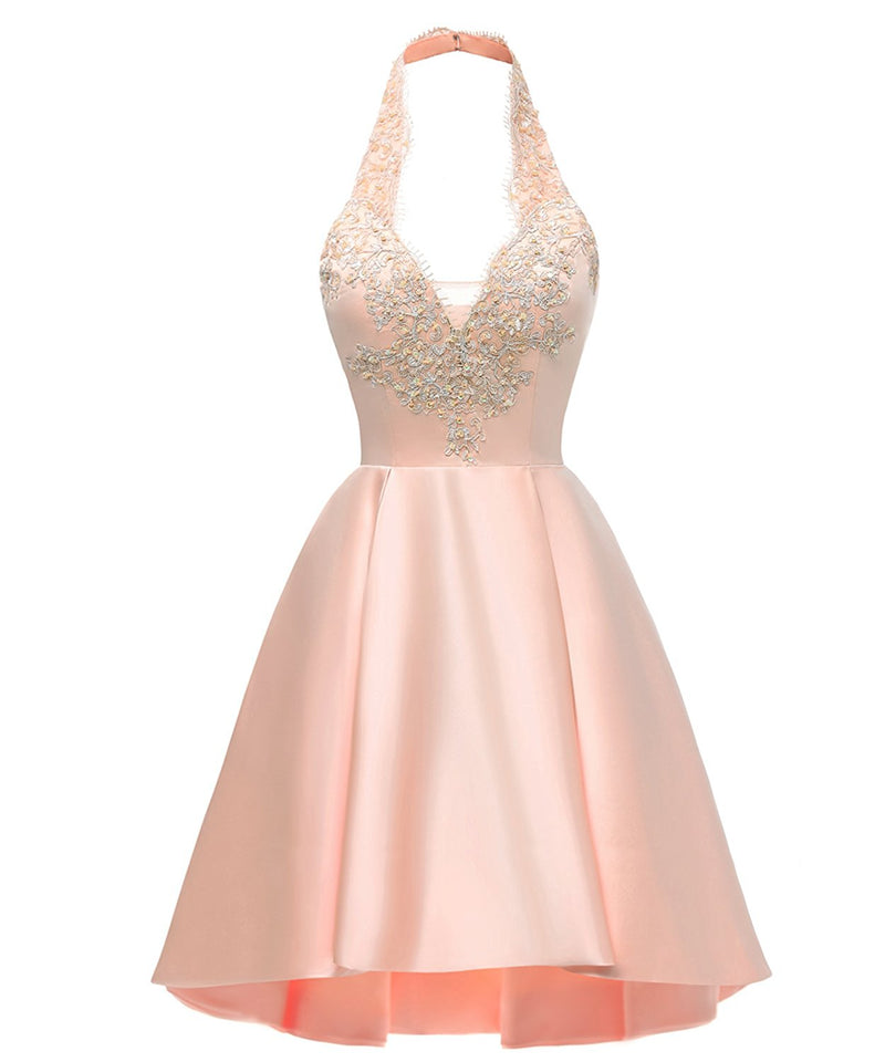 Vestido corto de fiesta para niñas con escote halter, espalda cruzada y encaje con cuentas en color burdeos SP10220