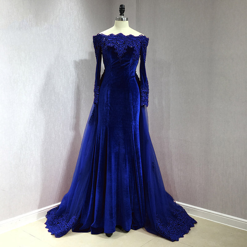 Vestidos de fiesta de terciopelo para mujer, de manga larga color burdeos, con encaje árabe, estilo sirena, vestido largo de noche con cola extraíble