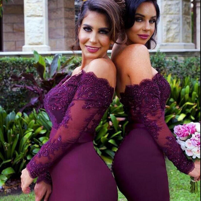 Vestidos de dama de honor largos con hombros descubiertos y sirena color burdeos, vestidos formales 2020, vestidos de noche largos
