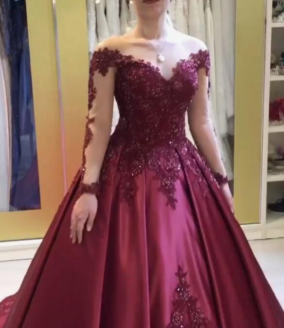 Vestido de quinceañera de manga larga color burdeos, vestido de fiesta para quinceañera, vestido de novia PL2150
