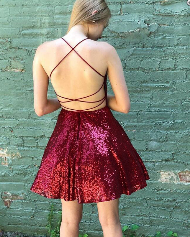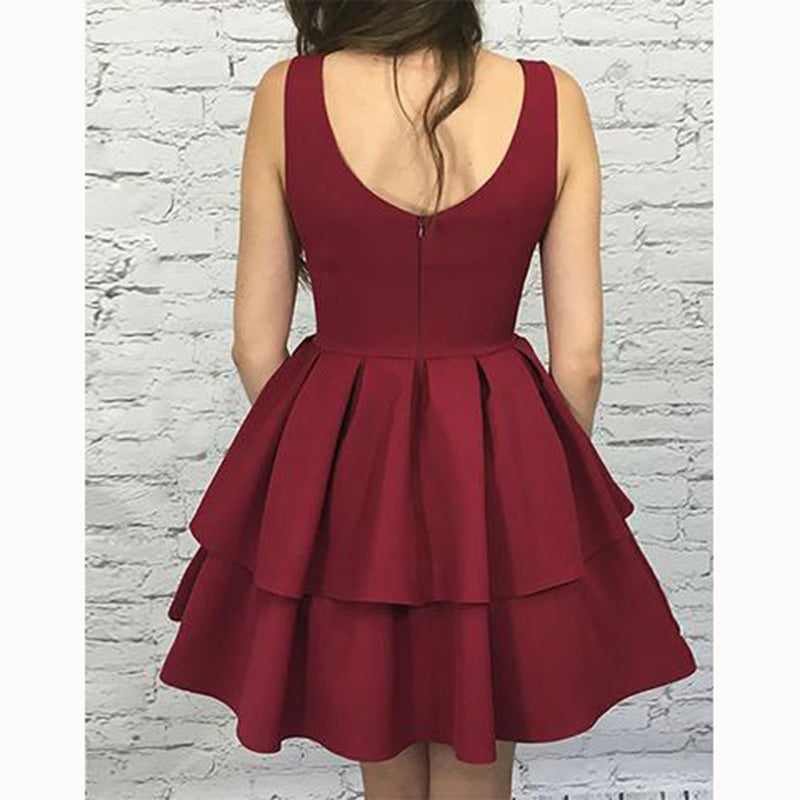 Vestido de fiesta corto burdeos con tirantes para regreso a casa, vestido de graduación juvenil