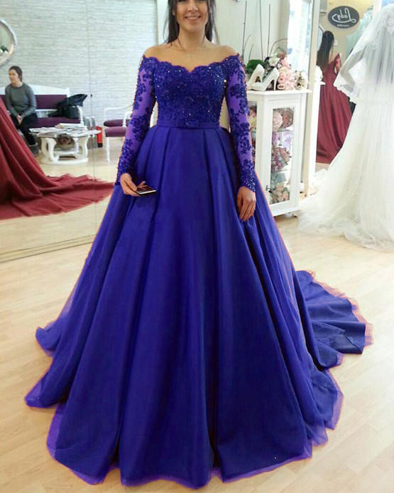 Vestido de novia de tul y encaje con mangas largas en burdeos, azul real y rosa, vestido de fiesta con cola PL0211