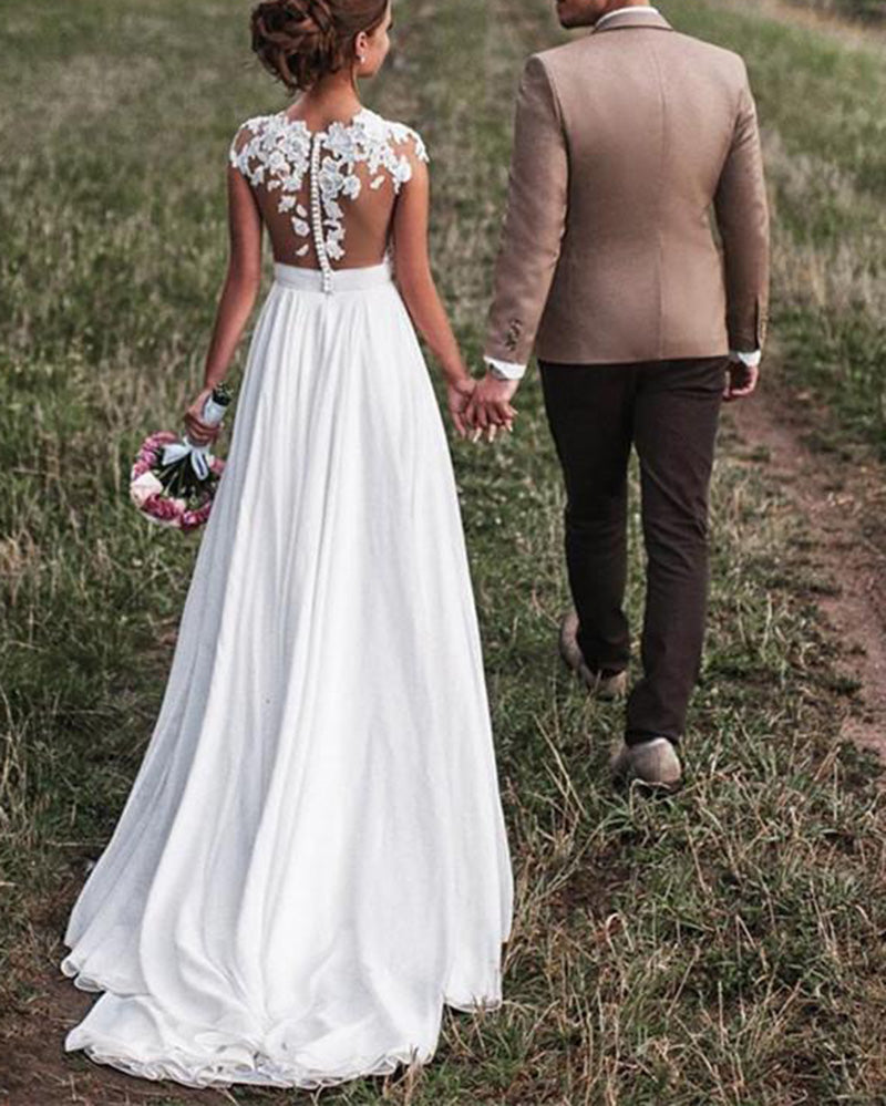 Vestido de novia de gasa de verano con mangas cortas y encaje Robe De Mariee 2022 WD321