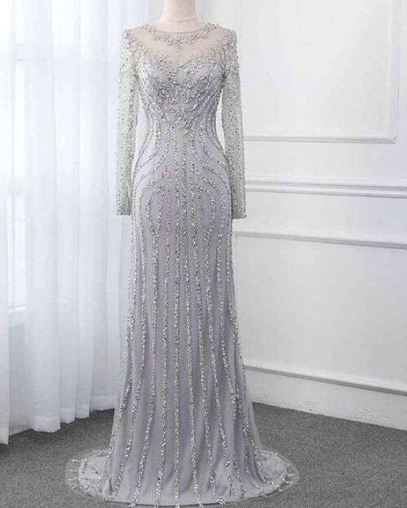 Vestido de fiesta formal de sirena largo con cuentas brillantes y lujoso PL6654