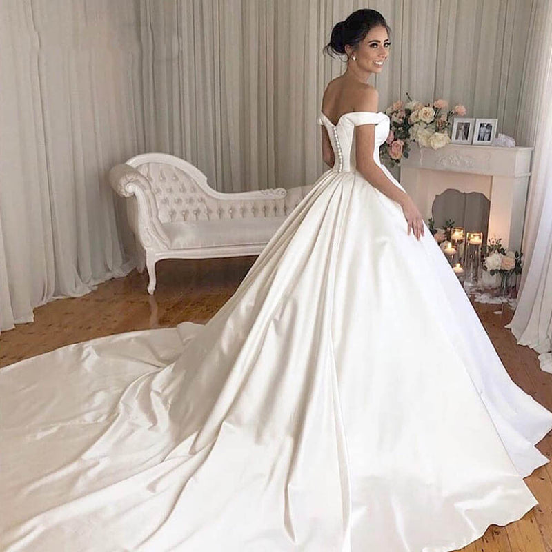 Vestidos de novia de satén con hombros descubiertos 2019 WD654