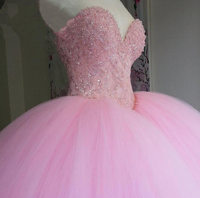 Vestido de quinceañera rosa, vestido de princesa con corsé y cuentas, vestido de debutante, vestido de quinceañera, vestido de novia