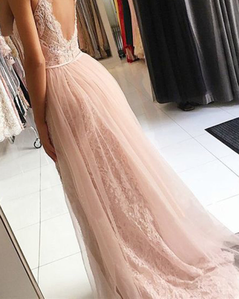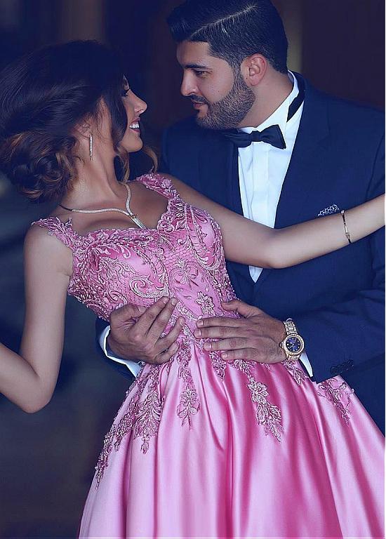 Vestidos de encaje rosa para niñas y mujeres Vestido formal de compromiso para mujeres PL653