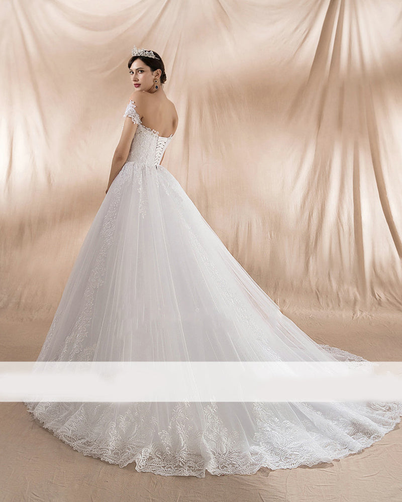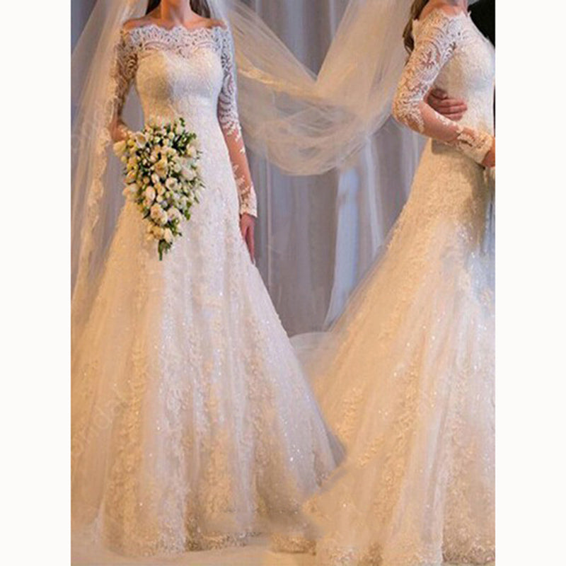 Vestidos de novia románticos de encaje con hombros descubiertos, vestidos de novia de princesa 2018 hechos a medida, Robe De Mariee WD5543