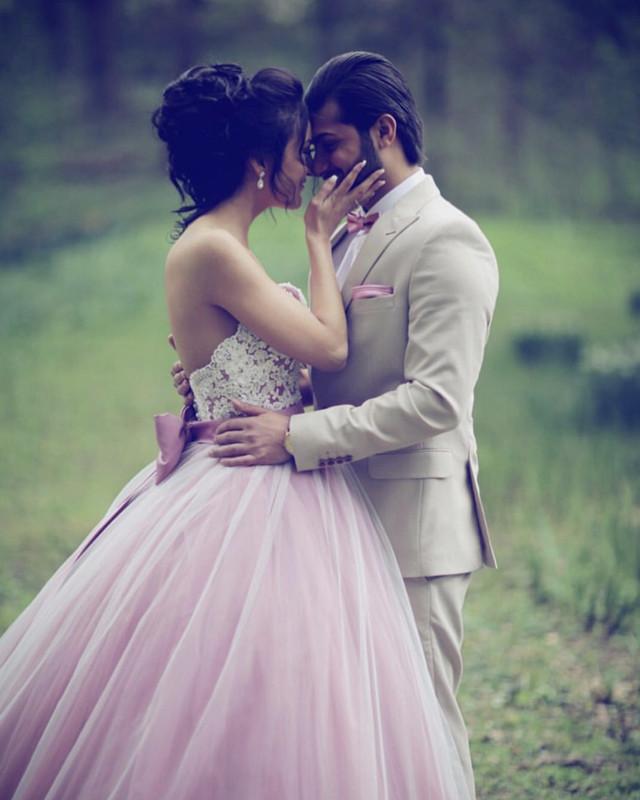 Vestido de novia romántico con corsé Sweetehart en color rosa ruborizado, vestido de novia de encaje para mujer WD0808
