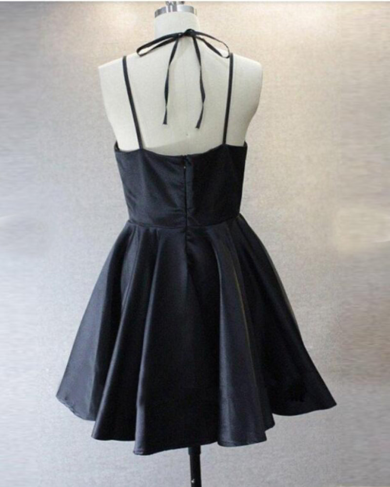 Vestido corto de cóctel para chicas sexys, de color negro, para la fiesta de bienvenida SP900