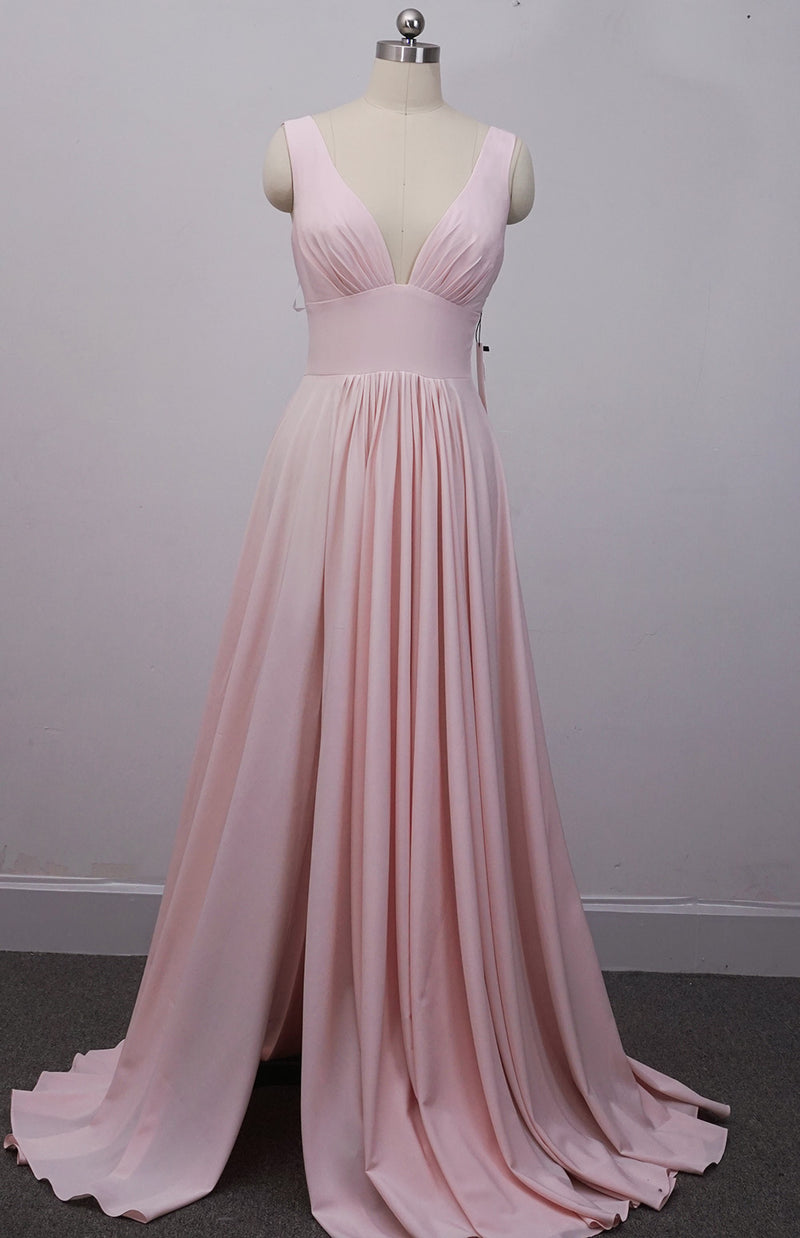 Vestido largo de dama de honor con escote en V color champán, vestido de fiesta de noche
