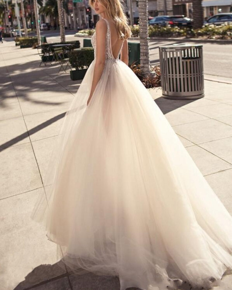 Encantadores vestidos de noche de tul color beige marfil con espalda descubierta y escote en V con abertura alta, vestidos de fiesta de graduación sexys, vestidos para ocasiones especiales hechos a medida PL01221
