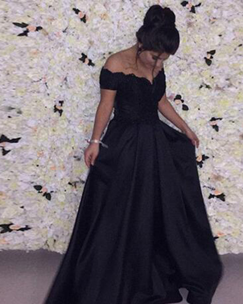 Vestido de fiesta negro barato 2022 Vestido de fiesta con hombros descubiertos PL214