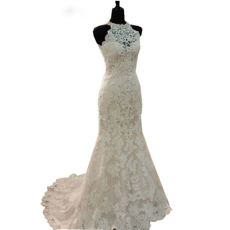 Vestido de novia de encaje Robe De Mariee hecho a medida, vestido de novia de sirena con cuello halter 2020 WD5536
