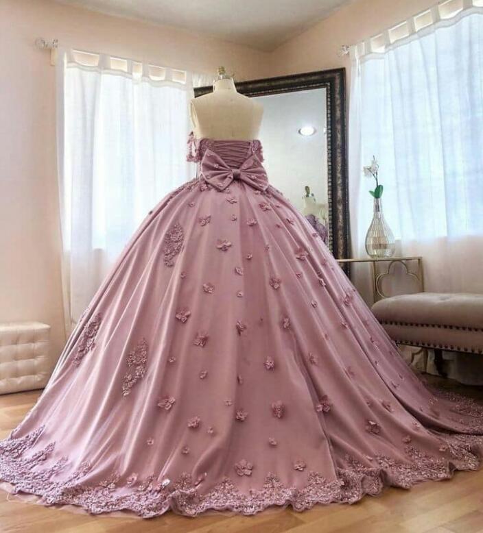 Vestidos de baile de color rosa polvoriento, vestido de quinceañera con encaje y hombros descubiertos, vestido de novia colorido para mujer PL0713