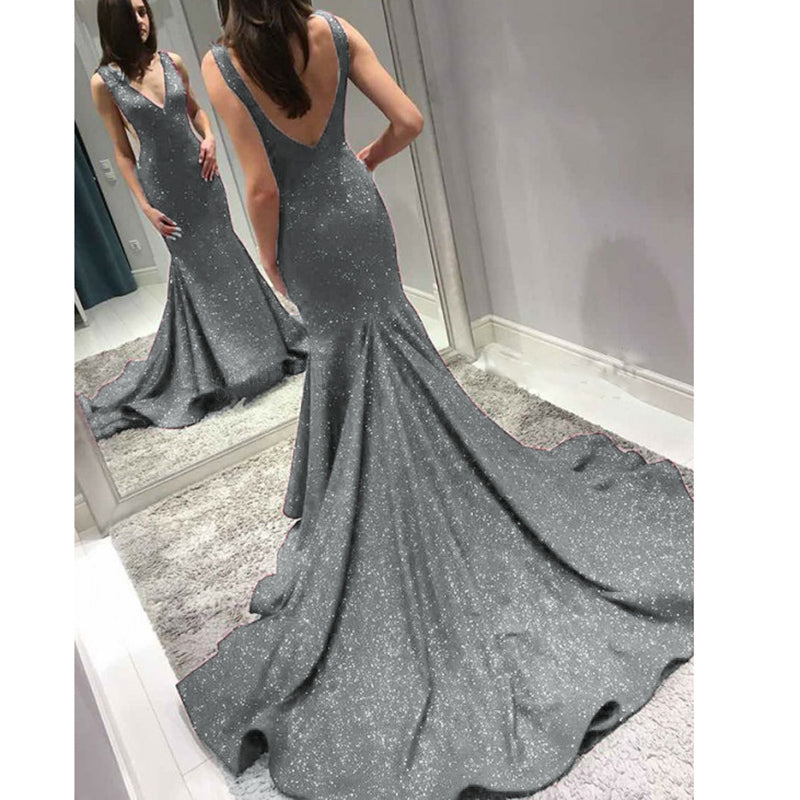 Elegantes vestidos de fiesta ajustados con purpurina, escote en V profundo de sirena, atuendo formal de noche para mujer, vestido de desfile 2020