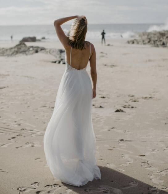 Elegante vestido de novia de playa con encaje y tul hasta el suelo, estilo bohemio WD10221