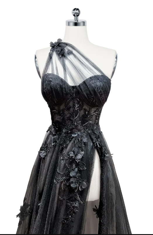 Elegant One Shoulder Black Tulle Long Prom Dress | Perfect for Prom Night 2025
