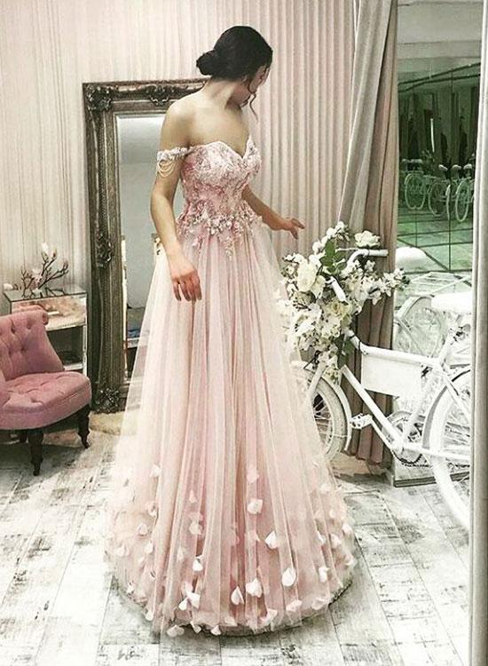 Elegantes vestidos de fiesta rosas largos hasta el suelo para fiesta formal 2019 con flores de encaje PL872