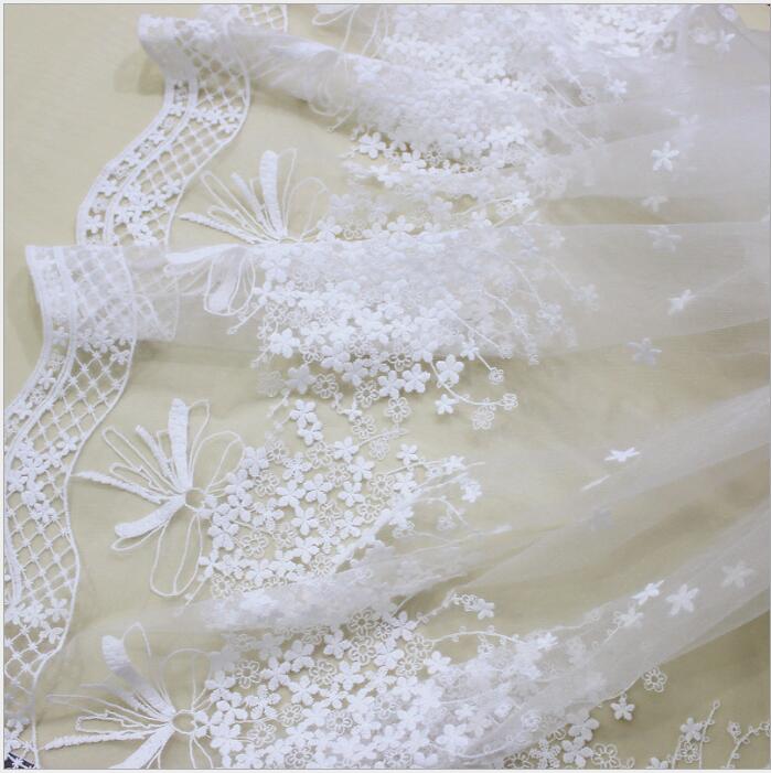 Tela de tul con encaje bordado blanco para vestido de novia/vestido informal DIY