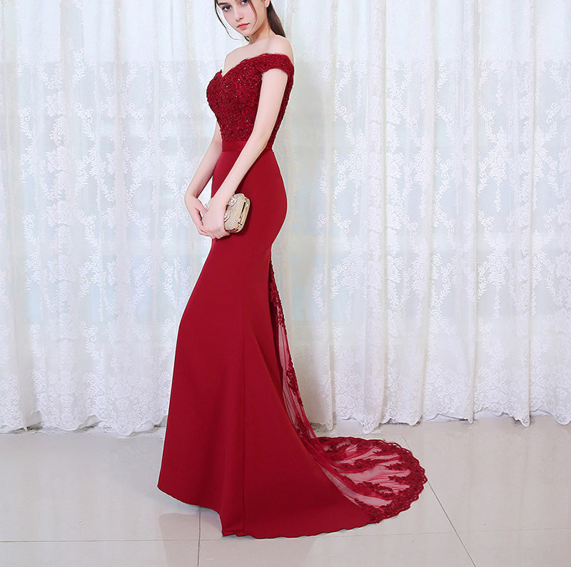 Fabulosos vestidos de noche largos de color vino tinto con encaje, vestido formal de sirena, vestido de fiesta