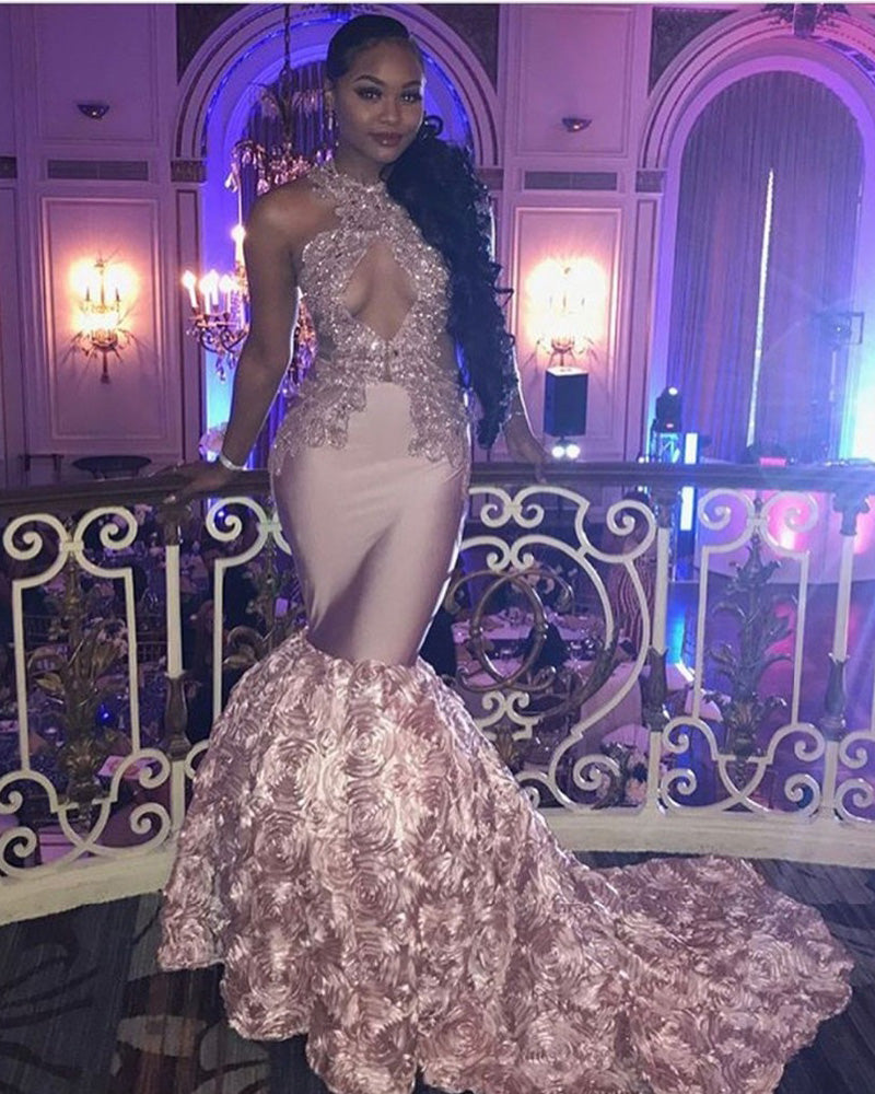 Vestido de fiesta largo con escote en V y flores rosas sexys de moda para niñas 2020 PL3001