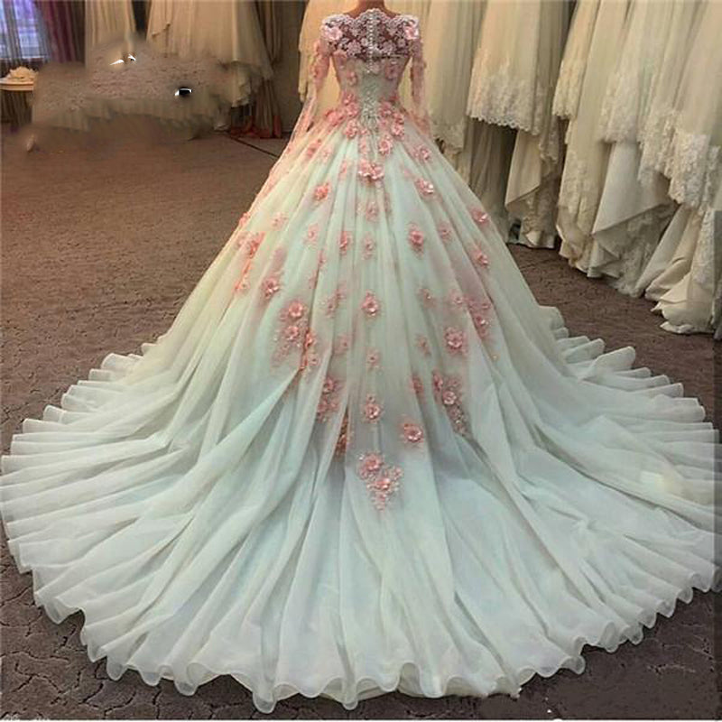 Vestido de novia de encaje de manga larga de moda, vestido de fiesta de princesa, vestido de noche 2020