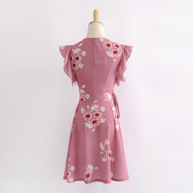 Vestido informal de verano con estampado floral y escote en V de gasa elegante con envío gratuito para mujer 2018 CS180