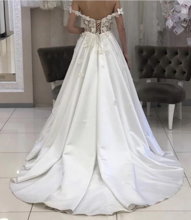 Vestido de novia con apliques de flores, vestido de novia a medida, vestidos de novia WD05241, talla grande WD0524