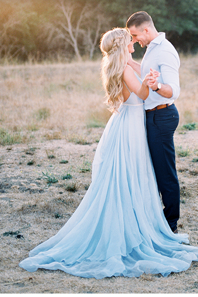 Vestido de fiesta largo de gasa azul con escote en V y abertura, vestido de noche formal, vestido de novia bohemio PL214