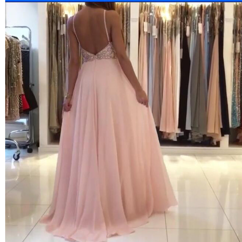 Vestido de fiesta de graduación con cuello halter y cuentas, color rosa, largo, sin espalda, vestido de graduación, túnica corta