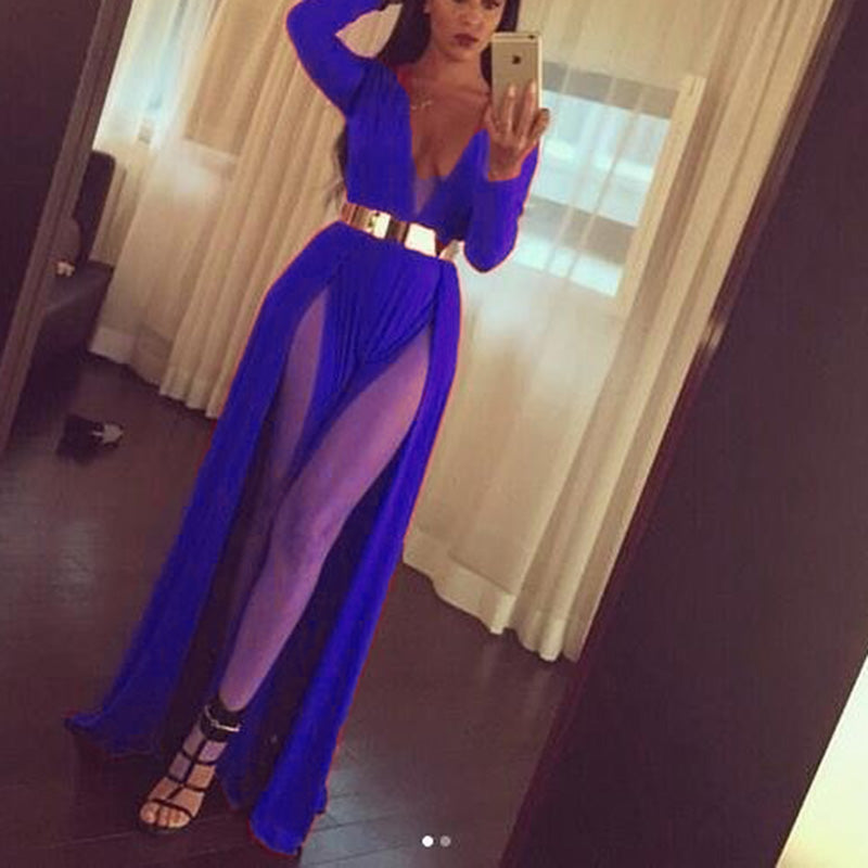 Vestido de fiesta de noche sexy con escote en V profundo y abertura roja para mujer, vestido de graduación largo con cinturón dorado